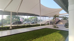The campus design further supports sustainability through the integration of natural elements. Open spaces, greenery, and features such as sky gardens contribute to improved air quality, reduced heat gain, and a more comfortable microclimate. These elements not only enhance environmental performance but also support the well-being of students and staff by creating a more refreshing and engaging environment.